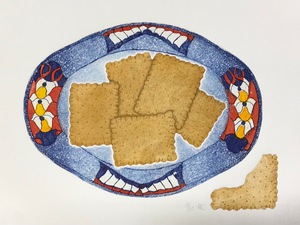 2006Bretons pannekoekenbord; incl.passepartout + lijst 40 x 50 cm.