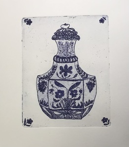 2022Dit blauwe aardewerk flesje heb ik als Delfts blauwe tegel geëtst, het is met een passepartout ingelijst.